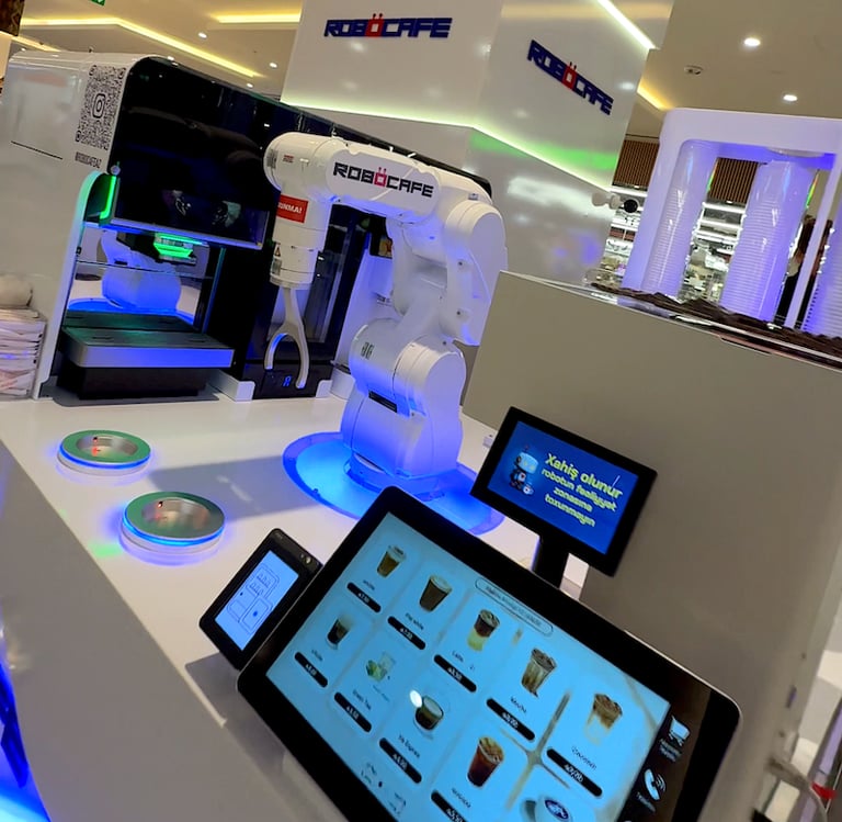 Bakıda şəhər həyatına yeni texnoloji məkan qoşulub - ilk RoboCafe Crescent Mall-da fəaliyyətə başlayıb. Burada içkilərin hazırlanması və təqdimatı sənaye tipli KUKA KR Agilus robotu tərəfindən həyata keçirilir. Süni intellekt və maşın görməsi ilə idarə olunan sistem bütün prosesi hazırlanmadan təqdimatadək tam nəzarətdə saxlayır və yüksək dəqiqlik, sabit keyfiyyət və maksimum gigiyena təmin edir. RoboCafe-də texnologiya qəhvə mədəniyyəti ilə birləşir: içkilər yüksək keyfiyyətli Arabica qəhvə növlərindən hazırlanır. Ziyarətçilər eyni zamanda dünyaca məşhur Pepper humanoid robotunun iştirakı ilə interaktiv robo-şounu izləyə bilirlər. Layihə JFB Tech və Bakurobotics tərəfindən həyata keçirilib və RoboCafe-nin yığılması tam şəkildə Bakıda, yerli mühəndis komandası tərəfindən icra olunub. RoboCafe konsept deyil - bu, real işləyən yeni nəsil kafe modelidir.